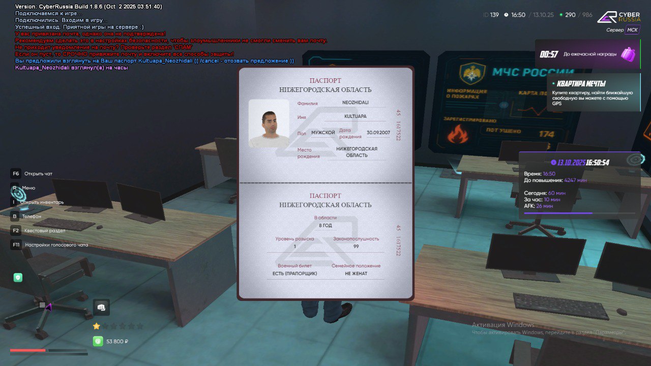 Копия паспорта (основная страница): (команда /pass + /time) тыкай