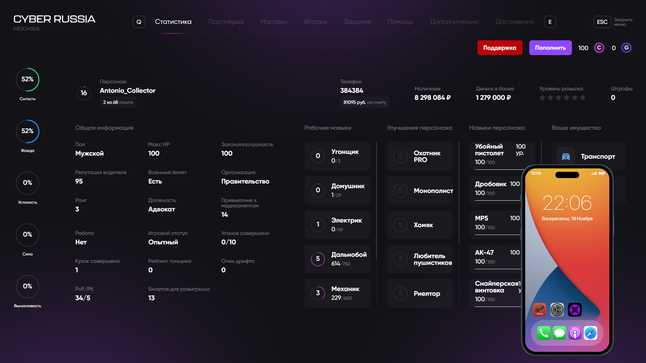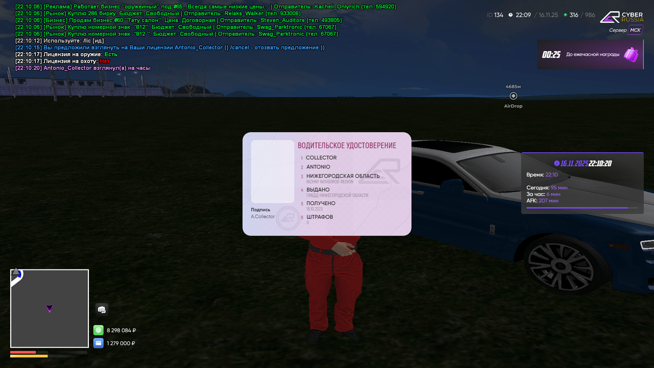 Копия военного билета: (команда /stats + /time) Тык