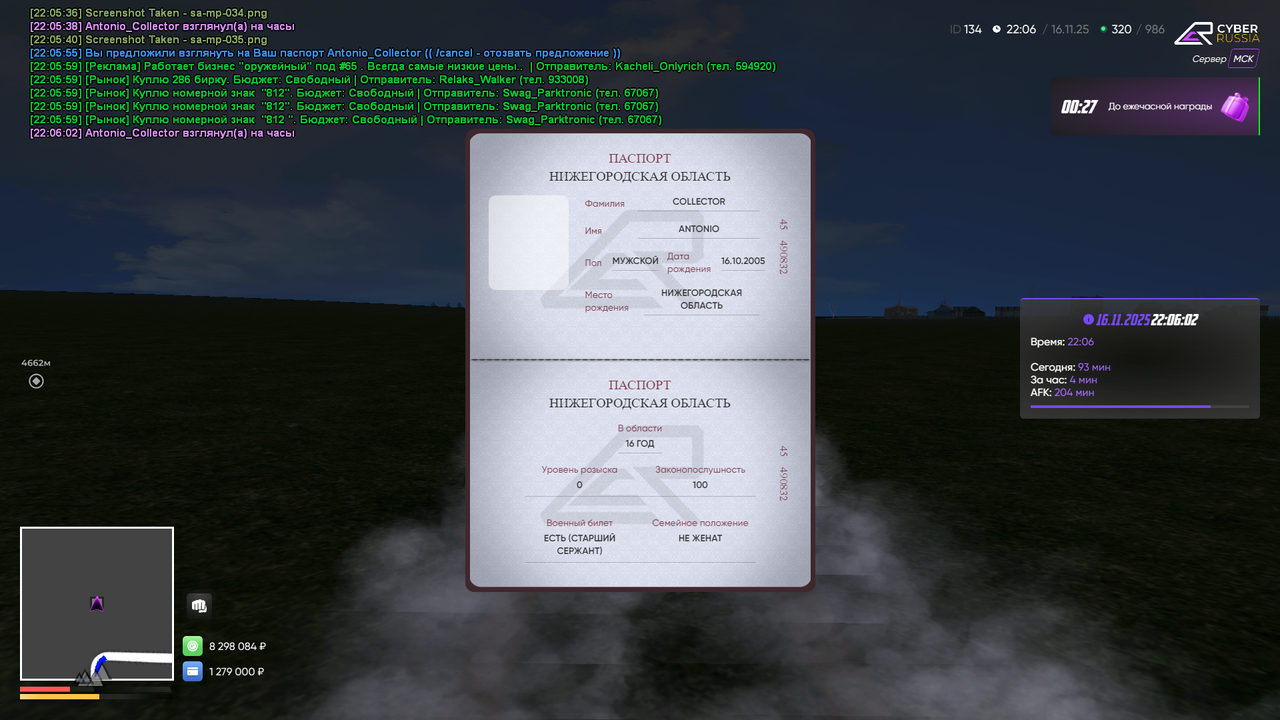 Копия паспорта (основная страница): (команда /pass + /time) Тык