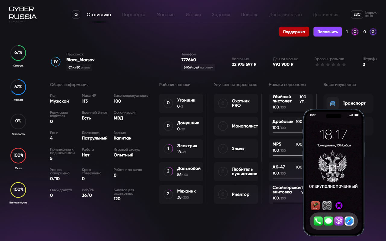 11. Скриншот вашей статистики (/mm > Статистика + B (откроется телефон на заставке время и дата) ):