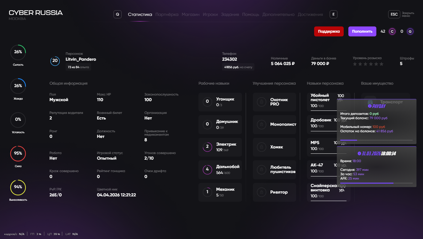 6. Копия военного билета (команда /stats + /time или B-телефон):https://s.fotora.ru/5129f208b0bfa889.png